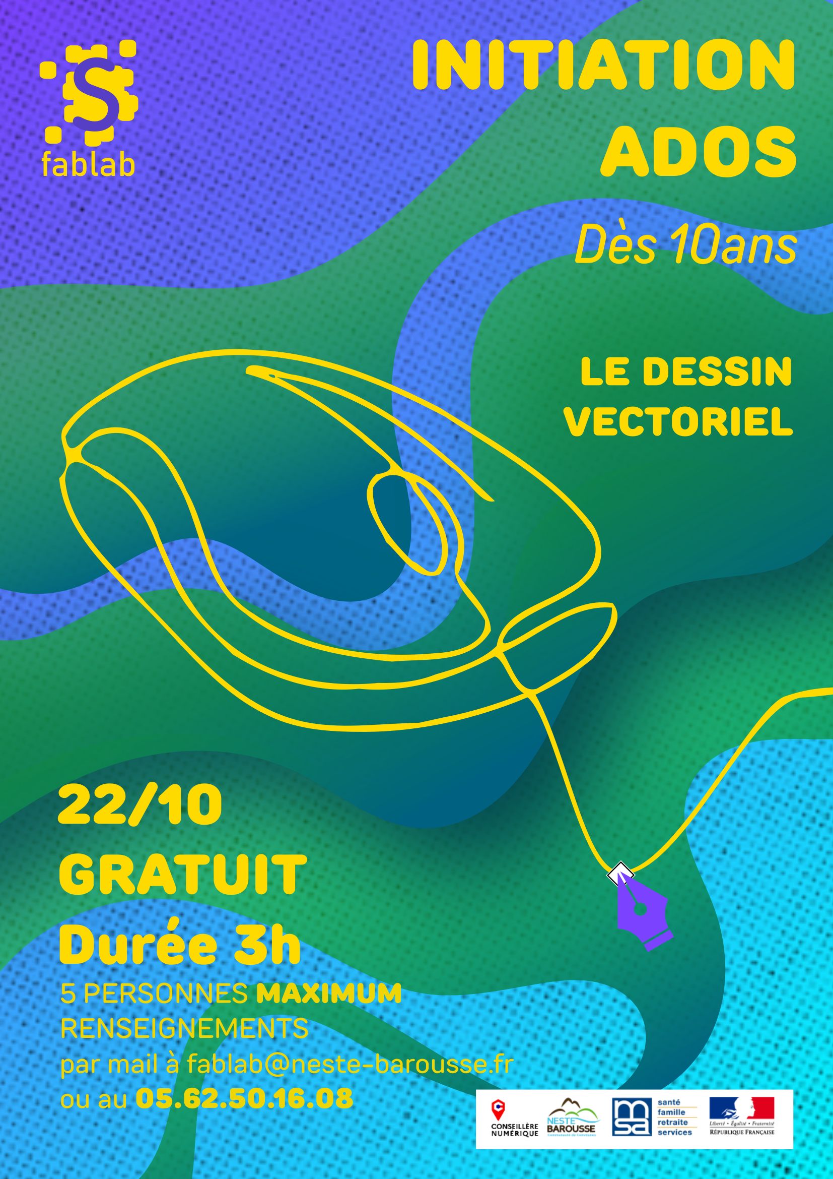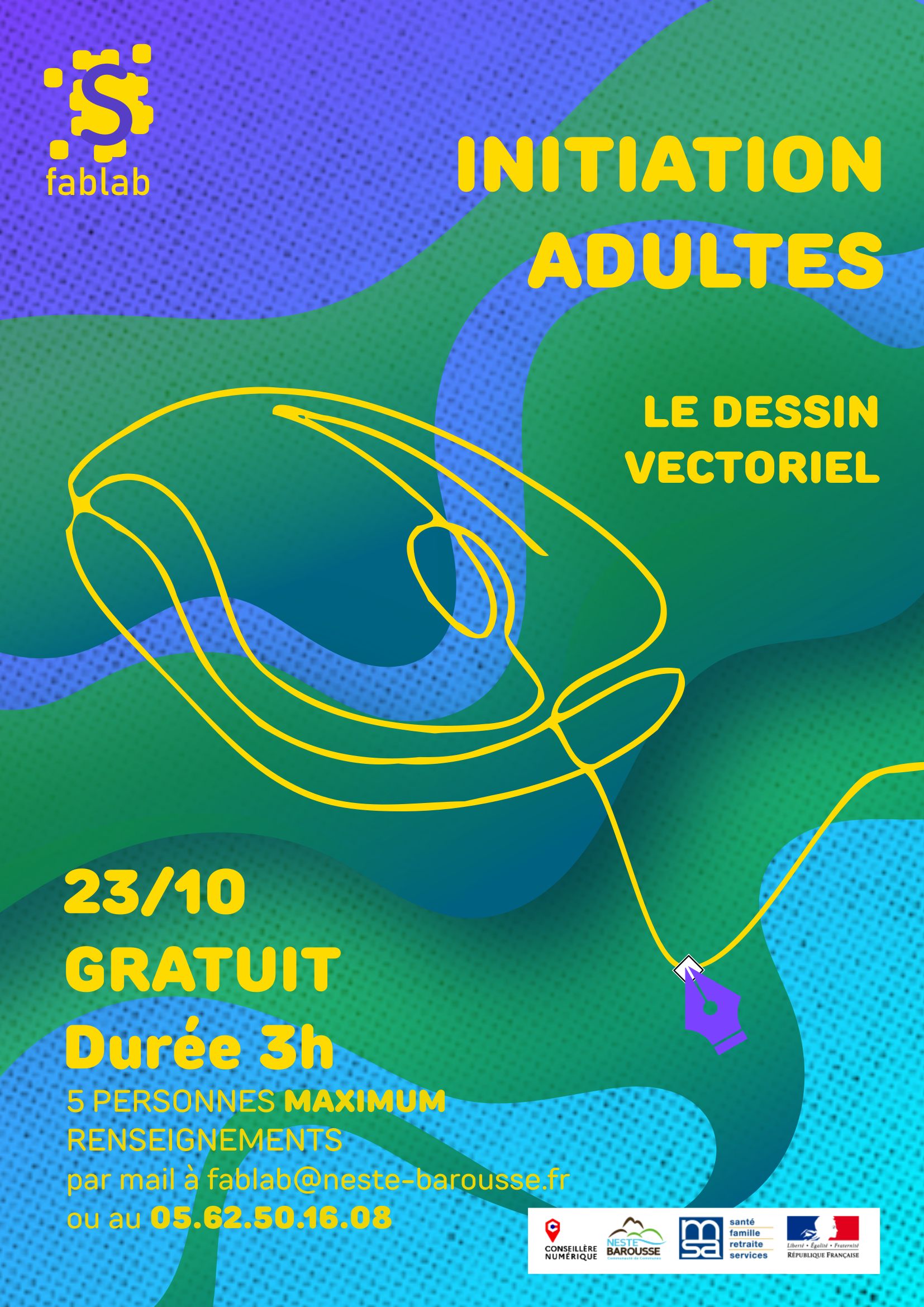 Chaque période de vacances est pour nous l’occasion de faire un break dans nos ateliers hebdomadaires, pour laisser la place à des initiations ouvertes à tous. Ados ou adultes, venez découvrir chacun votre tour, un logiciel gratuit qui vous permettra de créer un très grand nombre de projets.