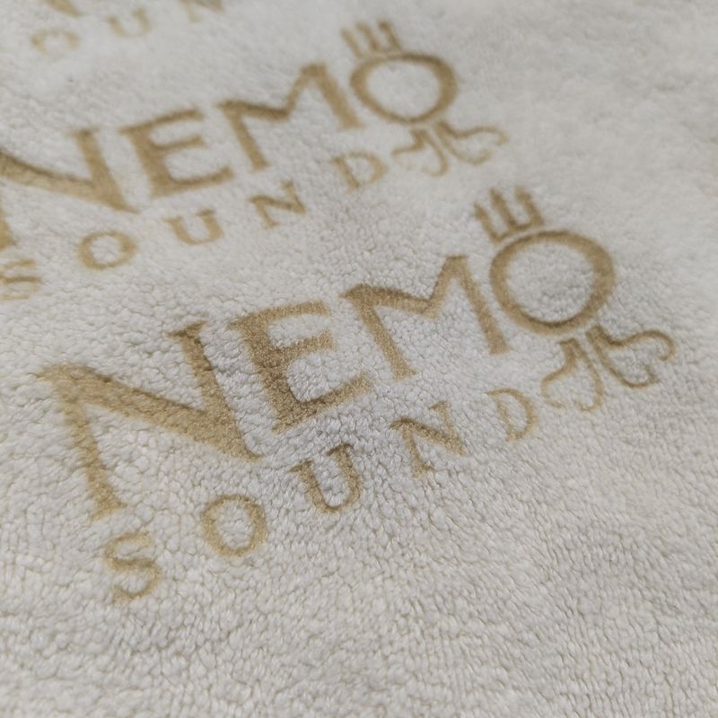 Alors, effectivement, se pose clairement la question de la composition du textile, et de son épaisseur. Nous avons commencé par essayer sur un t-shirt coton en jersey. Peu épais, il a rapidement montré des signes de faiblesse. La maille a été détériorée, au point de fragiliser le tissage. Cela peut d’ailleurs être un effet recherché, si on veut infliger un traitement de vieillissement qui va apparaitre peu à peu. Nous avons ensuite testé sur une jolie polaire en polyester. Peu épaisse mais très dense, la gravure y fait des merveilles ! En effet, on voit clairement les bouclettes se creuser, sans abîmer le tissage lui-même. Nous avons testé plusieurs réglage pour varier les résultats.