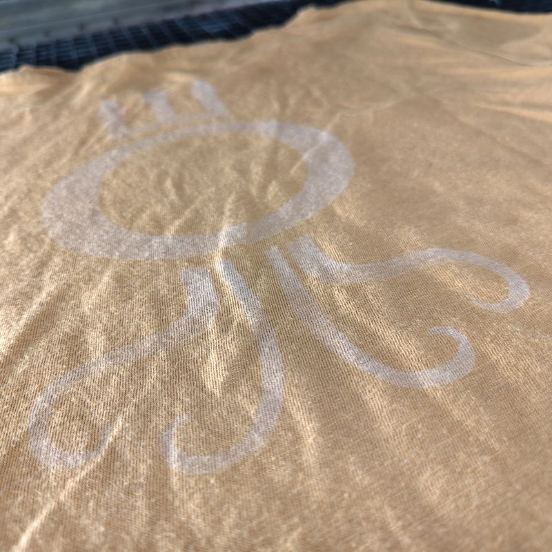 Enfin, nous avons testé sur un t-shirt noir. A première vue un t-shirt « normal » sauf que non…en fait il contenait coton ET fibre plastique. Du coup la gravure est ressortie comme fondue, laissant un toucher plutôt désagréable, rigide et dur.